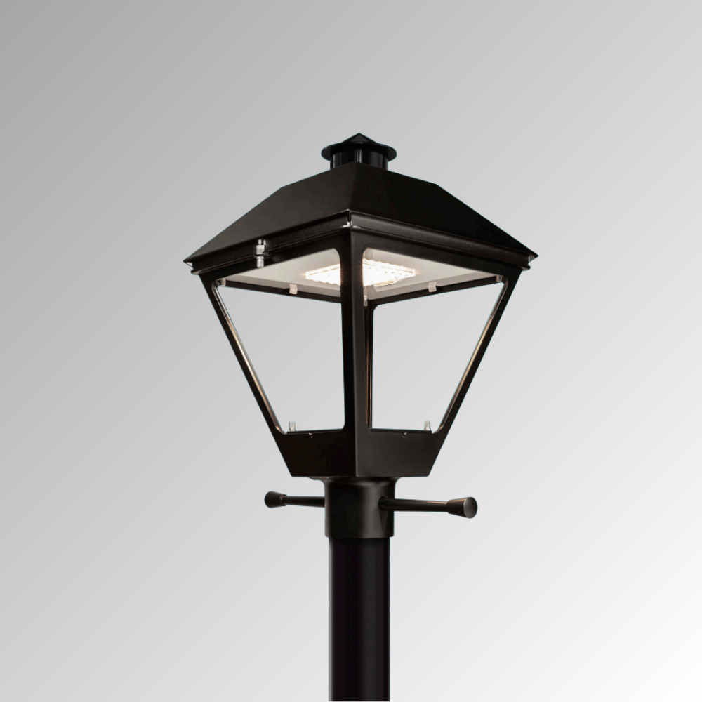 The LEOTEK Post Top Colonial Lantern brings timeless architectural styling together with advanced LED technology. Engineered with a durable die-cast aluminum housing, tool-less access, and uniform low-glare illumination, it delivers long-lasting performance for streetscapes, campuses, parks, walkways, and decorative urban settings. Designed for easy maintenance and retrofit applications, this lantern offers exceptional efficacy, field-adjustable output, and accessories that support light-trespass control and Dark Sky compliance.